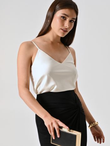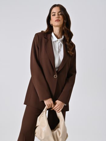 Capo must-have per un’eleganza contemporanea, il gilet in cadi fluido conquista con la sua linea essenziale e il taglio sartoriale. Realizzato in tessuto leggero e piacevolmente scivolato, presenta una chiusura con tre bottoni rivestiti tono su tono e piccoli revers frontali. Il fit è aderente e valorizza la silhouette, mentre i dettagli come le finte tasche donano un tocco di raffinatezza. Perfetto da abbinare al pantalone coordinato (CFC0125495003B373) e alla giacca vestaglia in match (CFC0125491003B373) per creare un completo sofisticato, ideale per eventi o occasioni formali con un twist di stile.